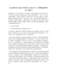XX县委书记2025年度民主生活会个人对照检查材料(五个带头)