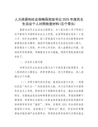 人力资源和社会保障局党组书记2025年度民主生活会个人对照检查材料