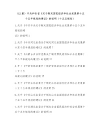 (12篇)中央和各省《关于制定国民经济和社会发展第十五个五年规划的建议》的说明(十五五规划)