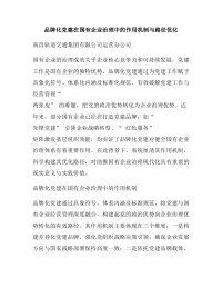 品牌化党建在国有企业治理中的作用机制与路径优化