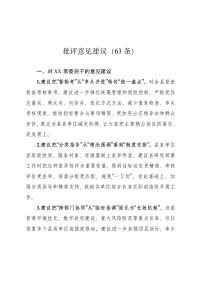 2025年度民主生活会批评意见建议63条