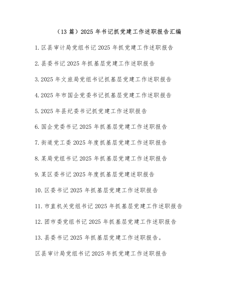 (13篇)2025年书记抓党建工作述职报告汇编