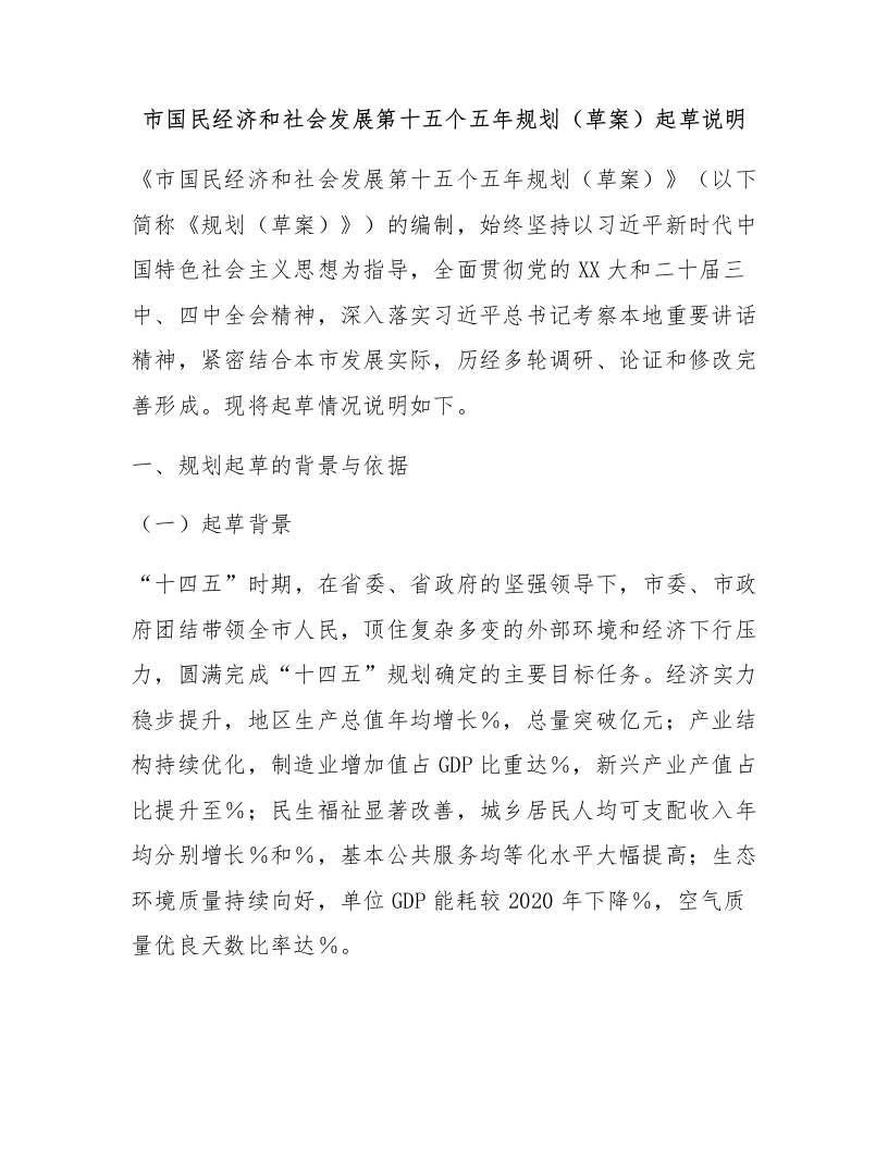 市国民经济和社会发展第十五个五年规划(草案)起草说明