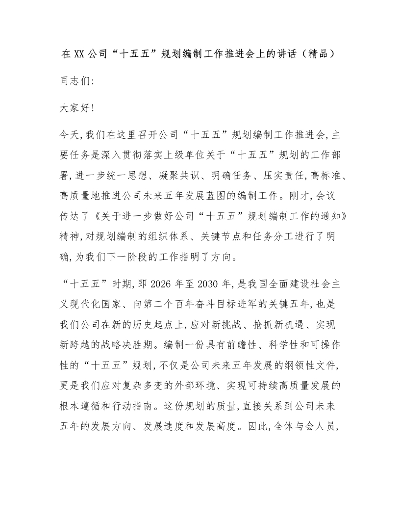 在XX公司“十五五”规划编制工作推进会上的讲话(精品)