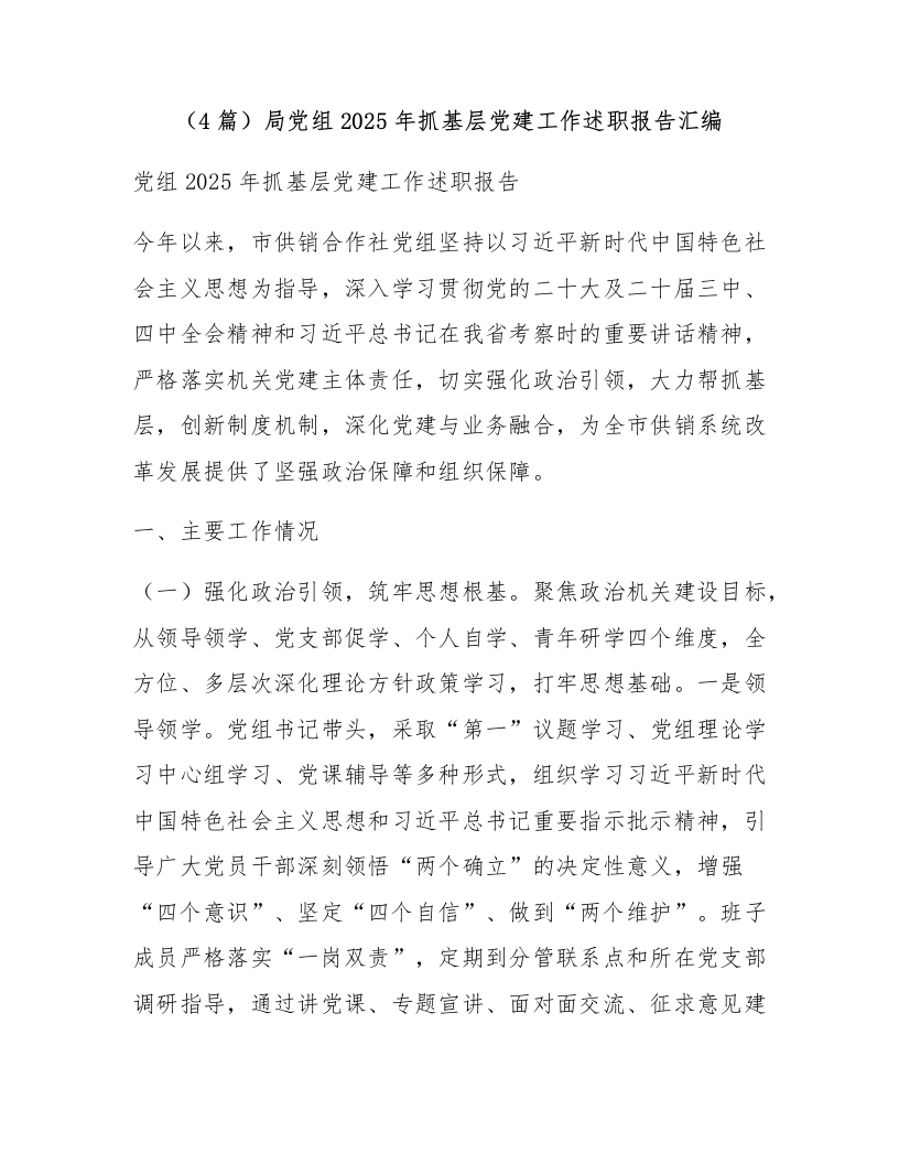 (4篇)局党组2025年抓基层党建工作述职报告汇编