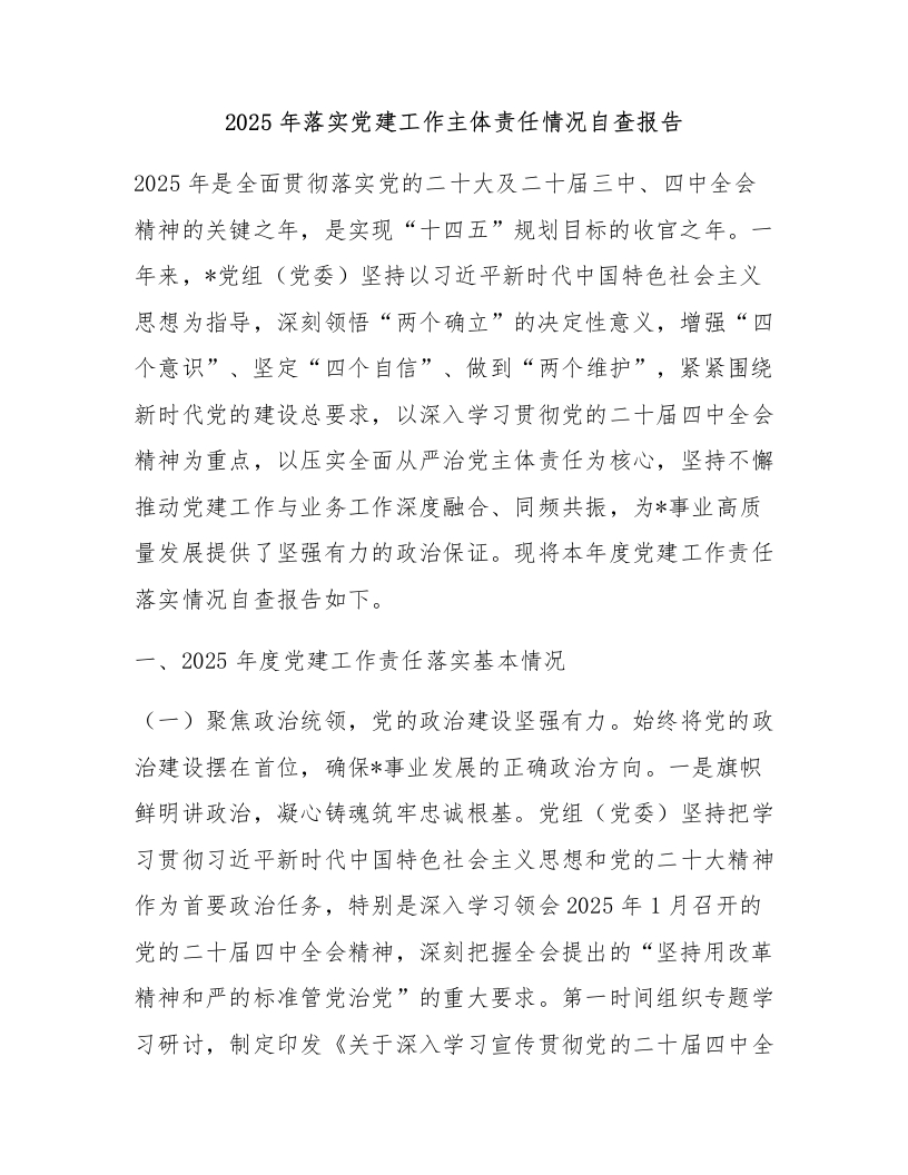 2025年落实党建工作主体责任情况自查报告