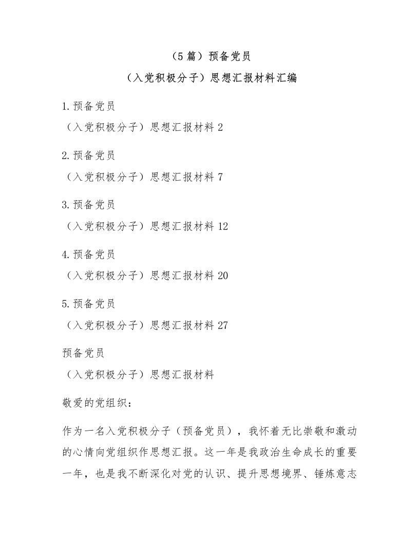 (5篇)预备党员 (入党积极分子)思想汇报材料汇编