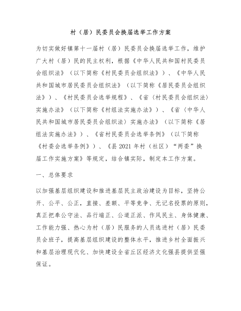 首页报告总结计划方案村(居)民委员会换届选举工作方案