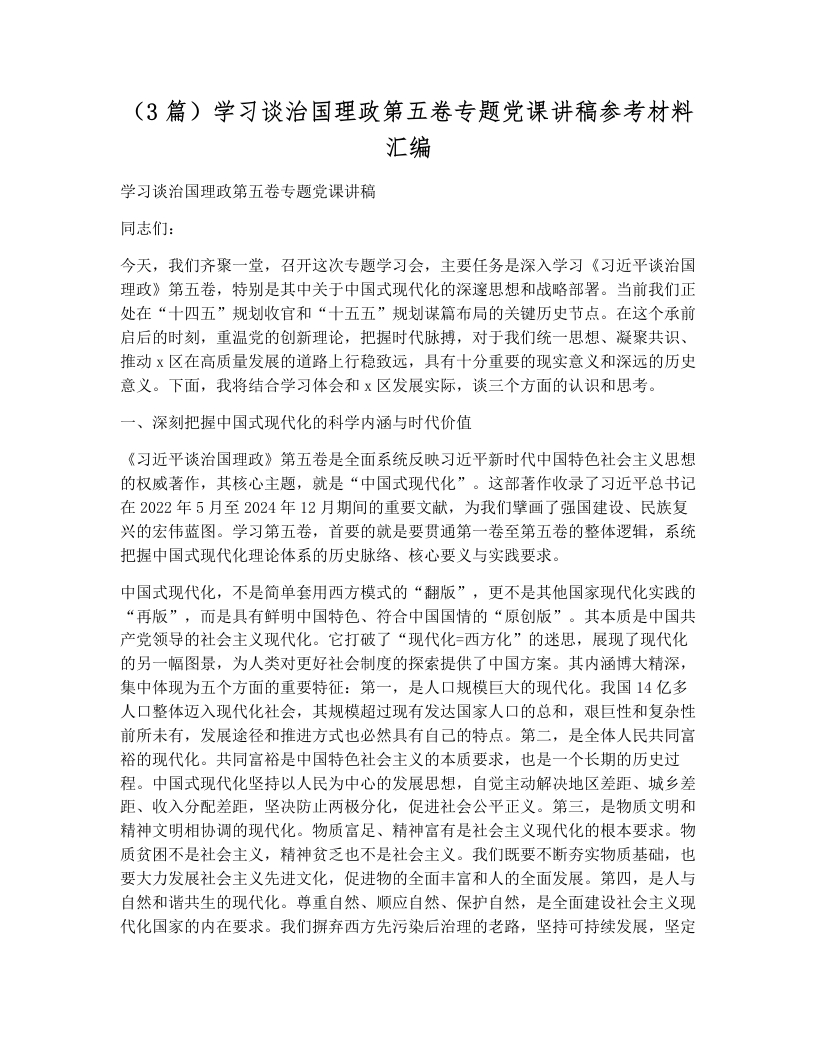 (3篇)学习谈治国理政第五卷专题党课讲稿参考材料汇编