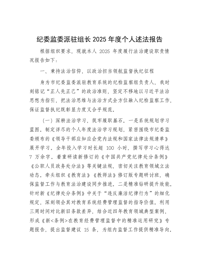 首页热门分类工作总结纪委监委派驻组长2025年度个人述法报告(履行法治建设职责情况总结报告)