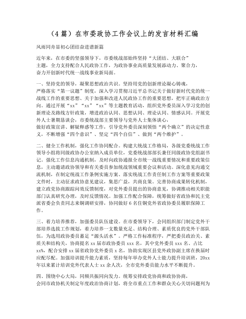 首页领导发言领导讲话(4篇)在市委政协工作会议上的发言材料汇编