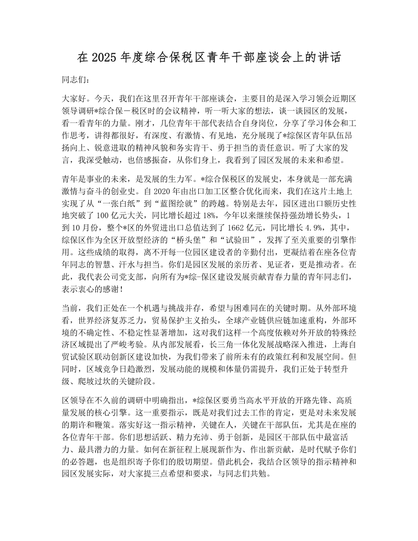 在2025年度综合保税区青年干部座谈会上的讲话