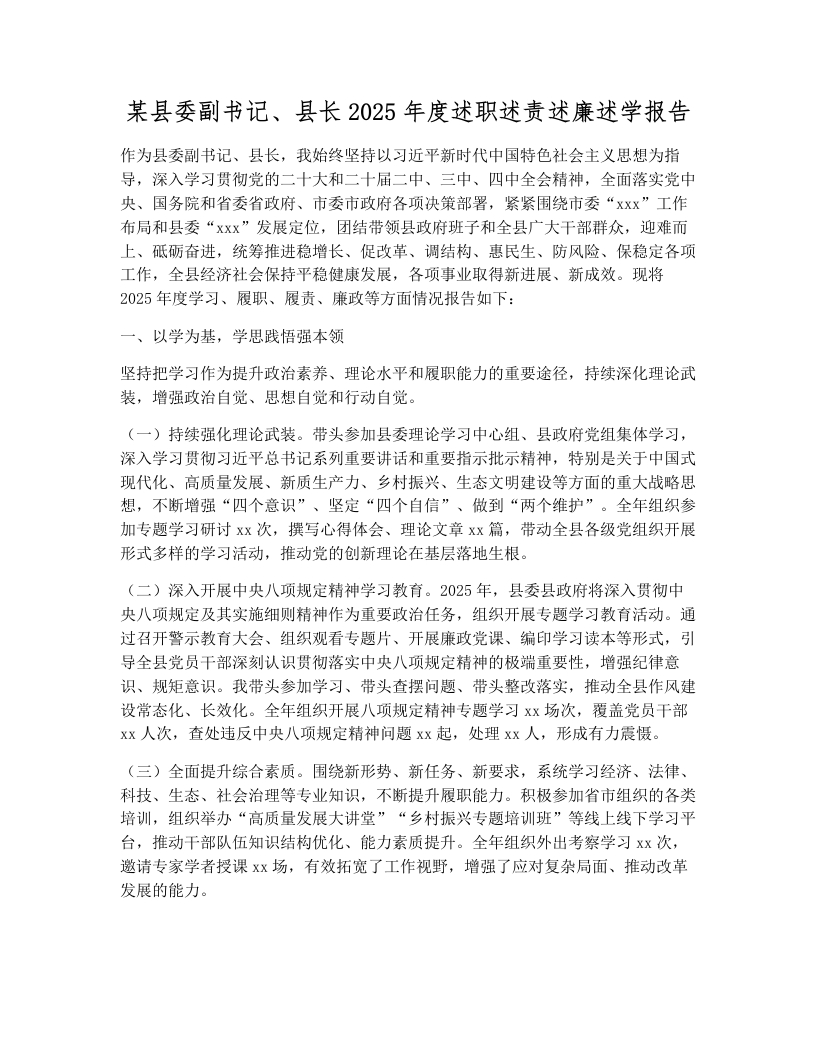 首页报告总结述职述廉某县委副书记、县长2025年度述职述责述廉述学报告