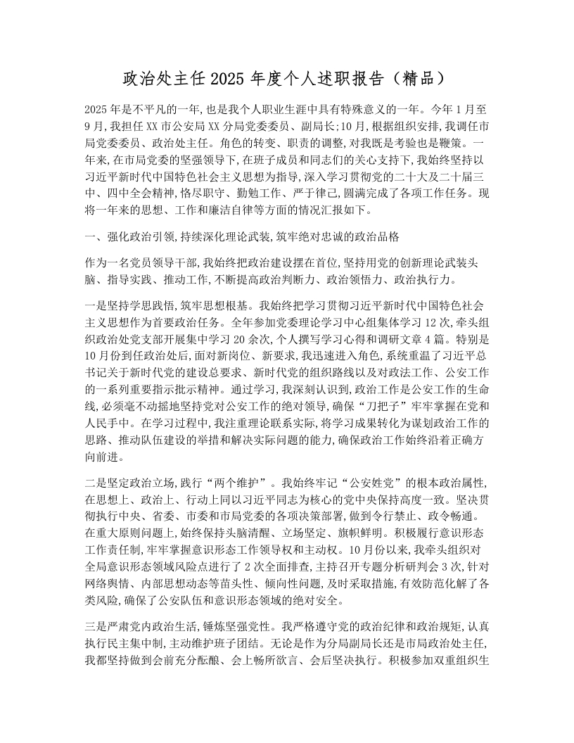 首页报告总结述职述廉政治处主任2025年度个人述职报告(精品)