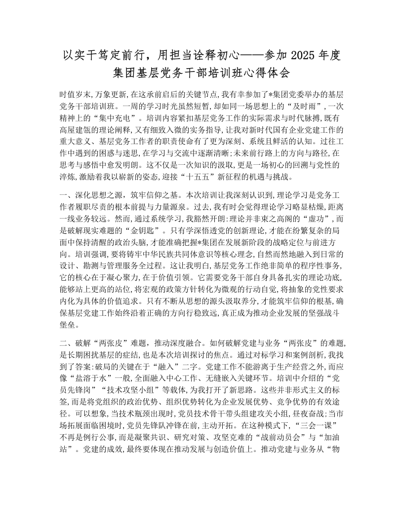 首页感悟体会心得体会以实干笃定前行,用担当诠释初心——参加2025年度集团基层党务干部培训班心得体会