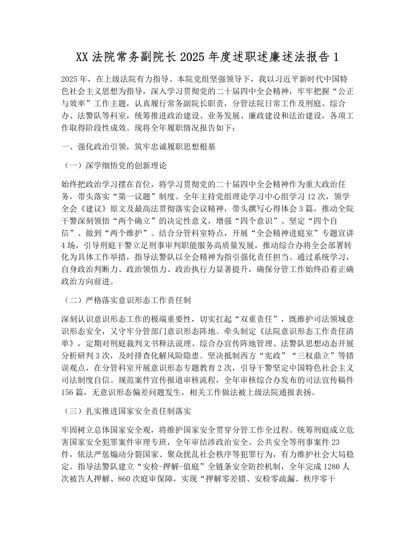首页报告总结报告总结XX法院常务副院长2025年度述职述廉述法报告1