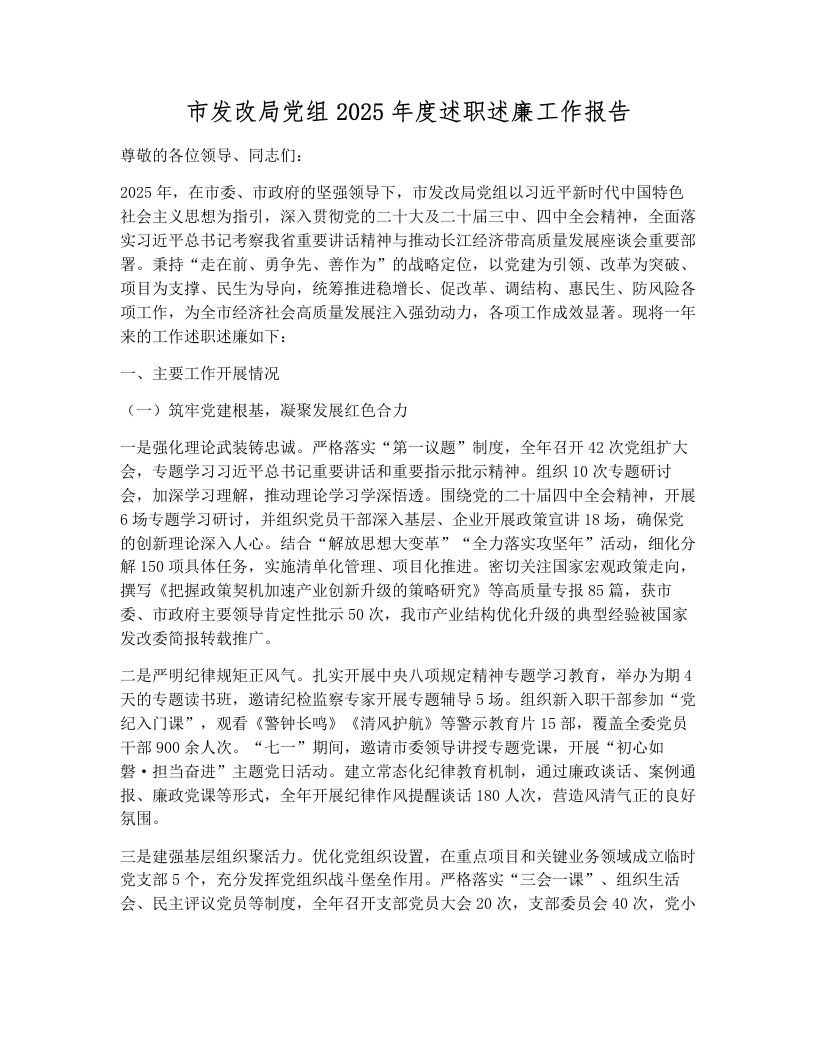 市发改局党组2025年度述职述廉工作报告