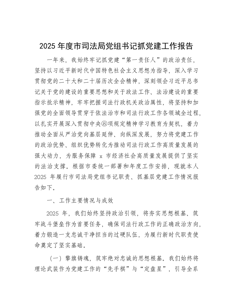 首页党建专栏党建党课2025年市司法局党组书记抓党建工作述职报告6800字