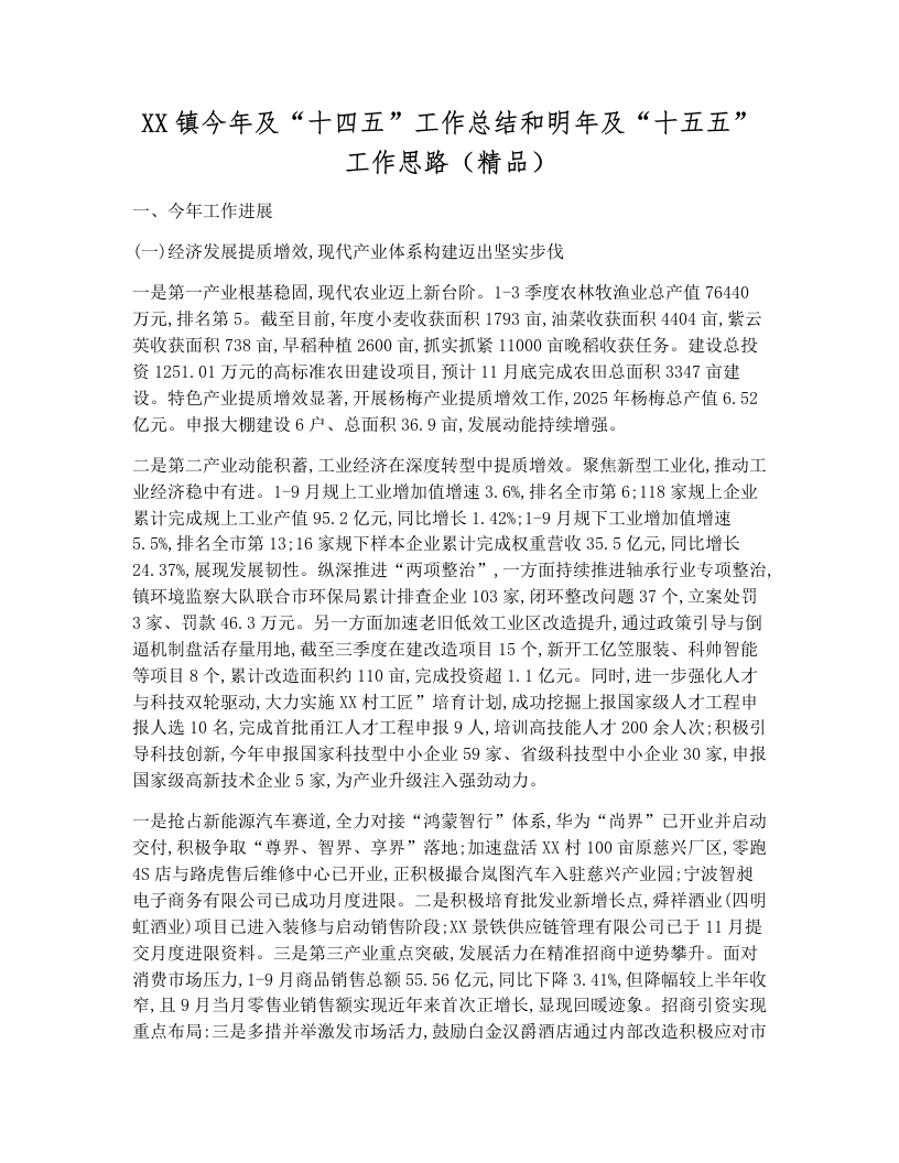 XX镇今年及“十四五”工作总结和明年及“十五五”工作思路(精品)
