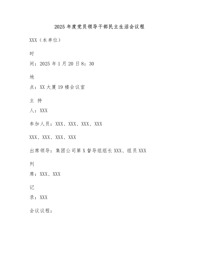 2025年度党员领导干部民主生活会议程