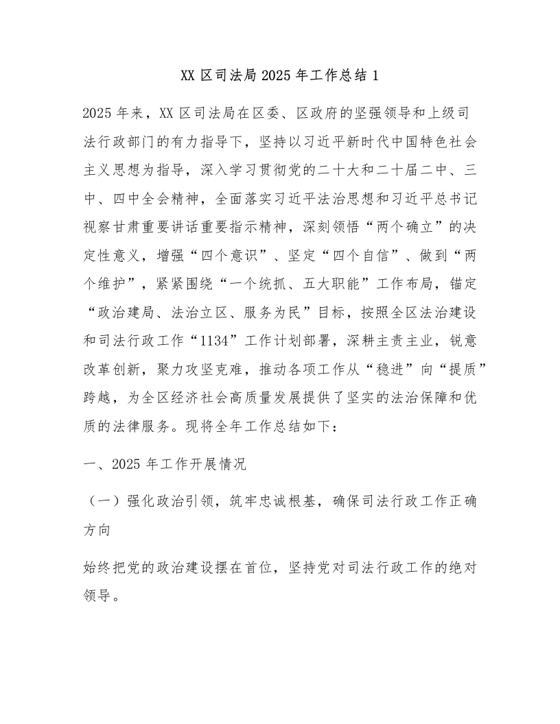 XX区司法局2025年工作总结1