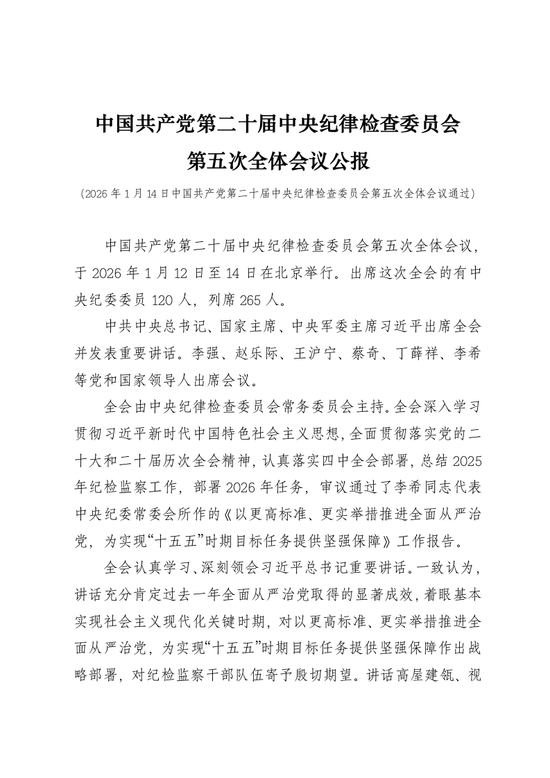 首页材料汇编综合材料学习二十届中央纪委五次全会公报精神