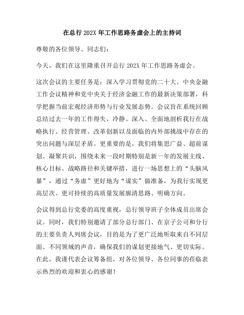 首页材料汇编综合材料在总行202X年工作思路务虚会上的主持词