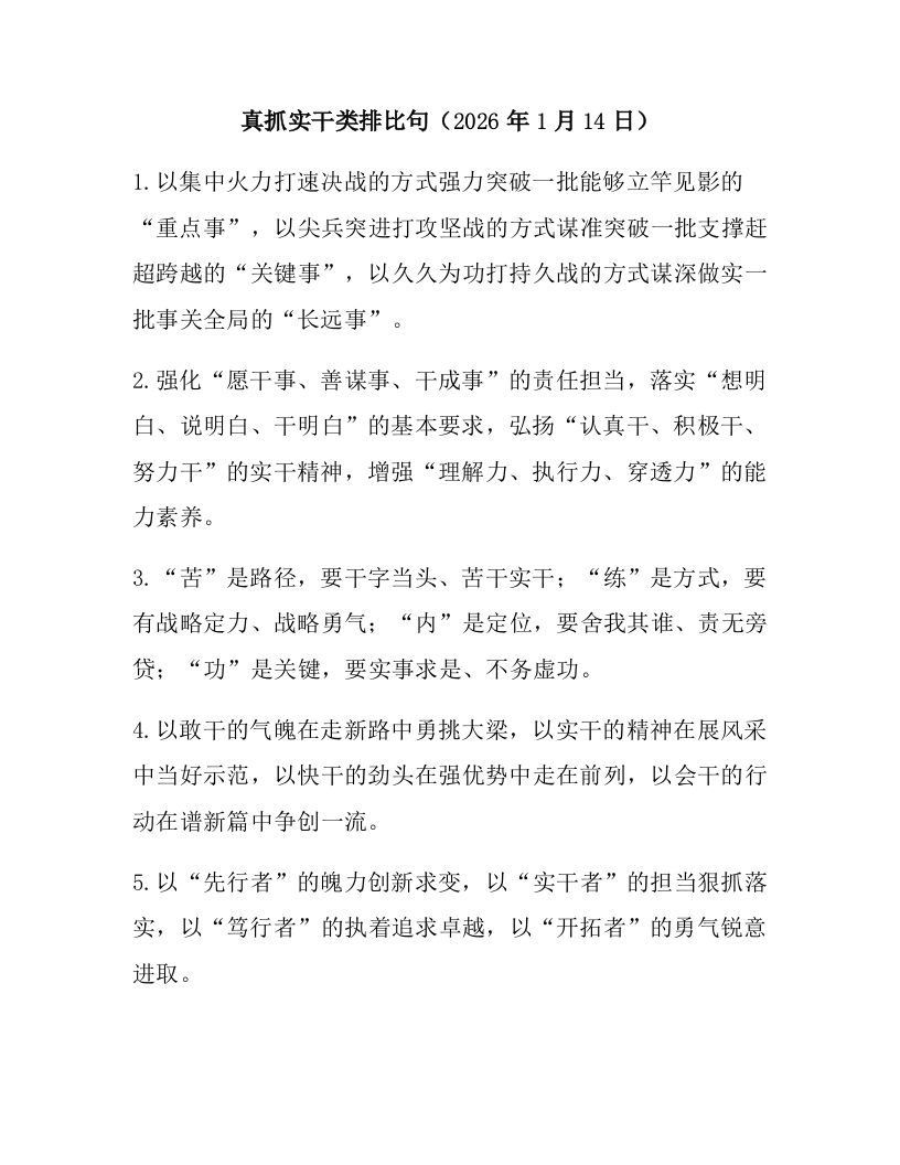 真抓实干类排比句(2026年1月14日)