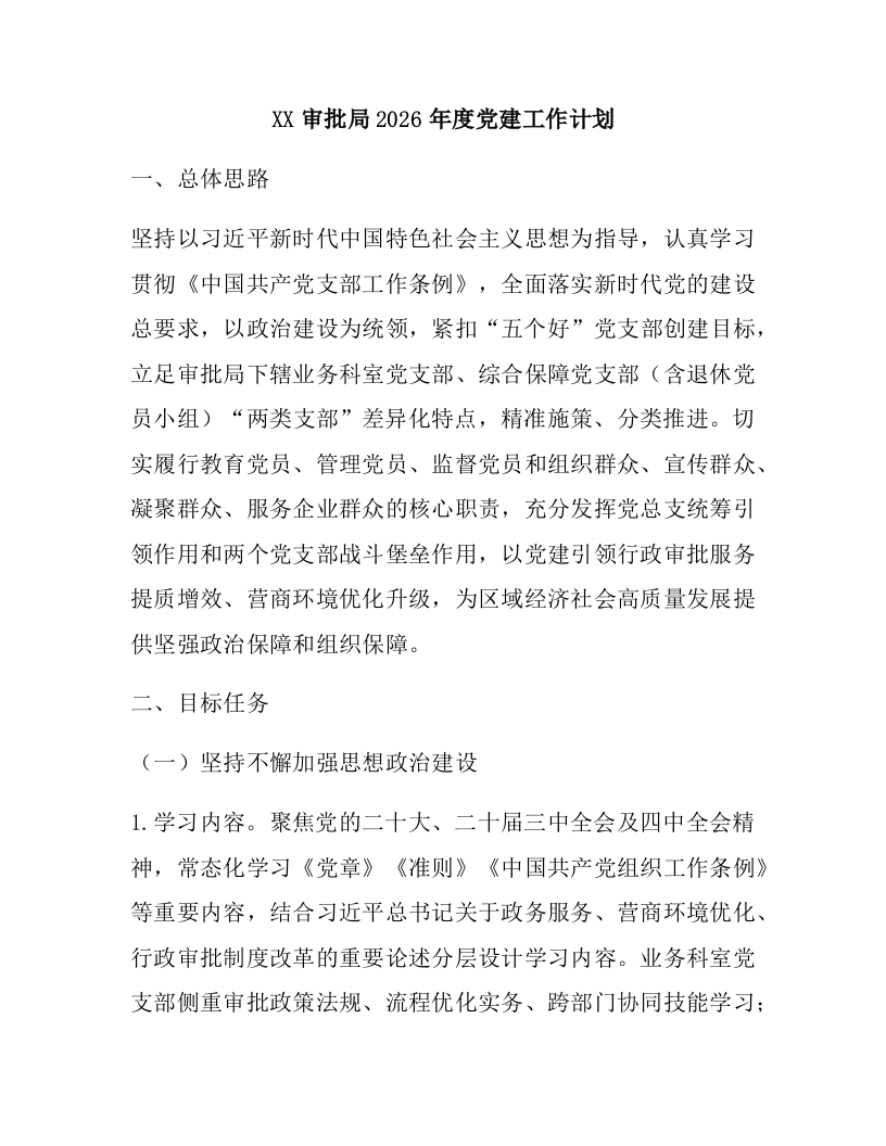 首页党建专栏党建党课XX审批局2026年度党建工作计划