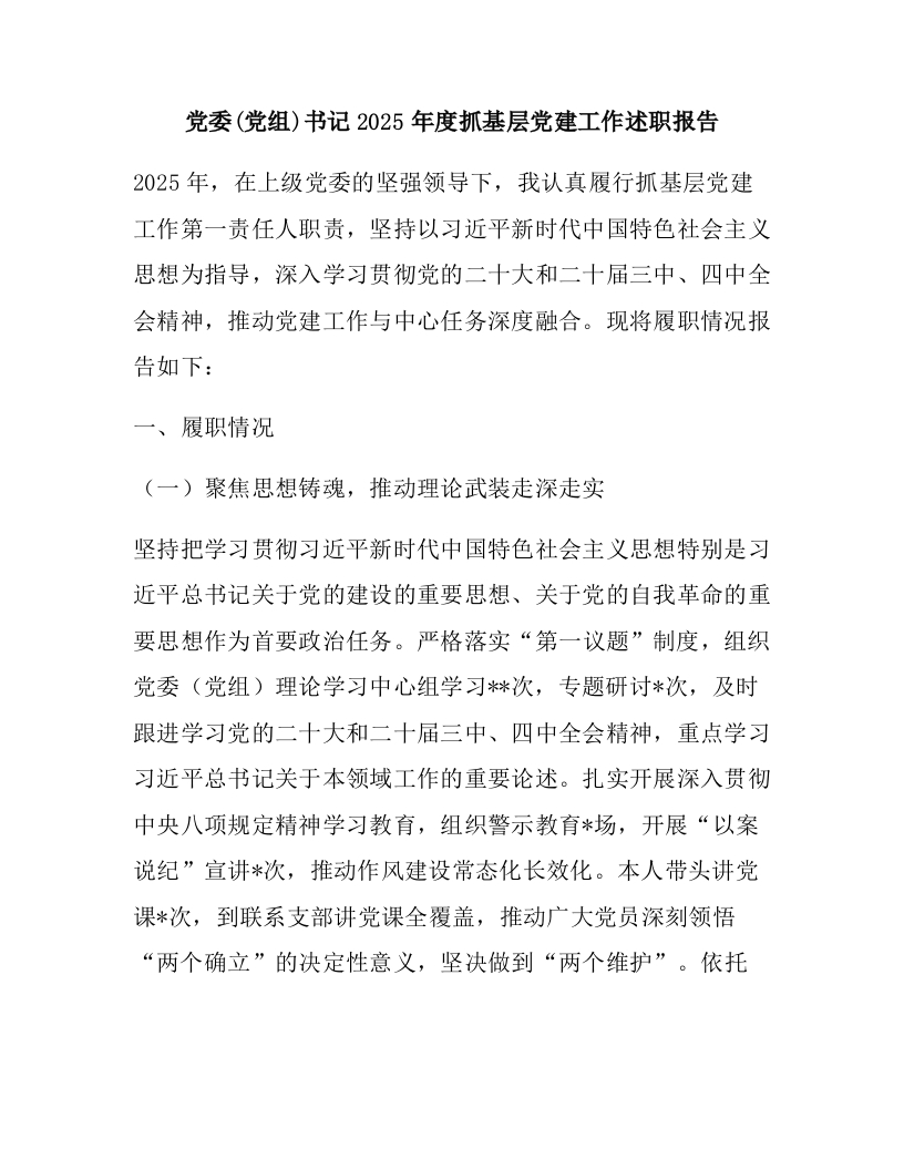 党委(党组)书记2025年度抓基层党建工作述职报告