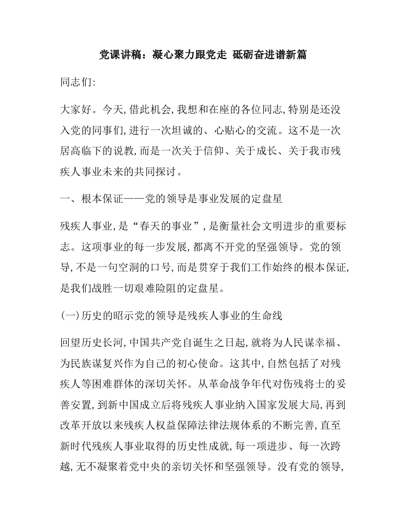 党课讲稿:凝心聚力跟党走 砥砺奋进谱新篇