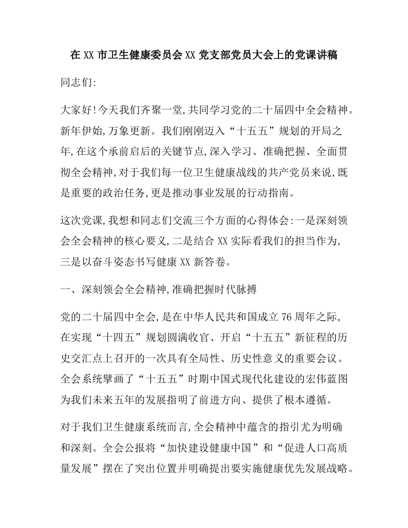 在XX市卫生健康委员会XX党支部党员大会上的党课讲稿