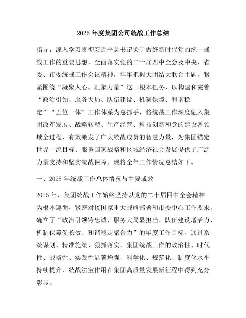 首页热门分类工作总结2025年度集团公司统战工作总结