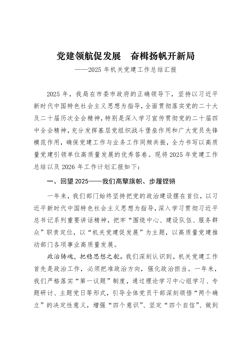 2025年机关党建工作总结汇报