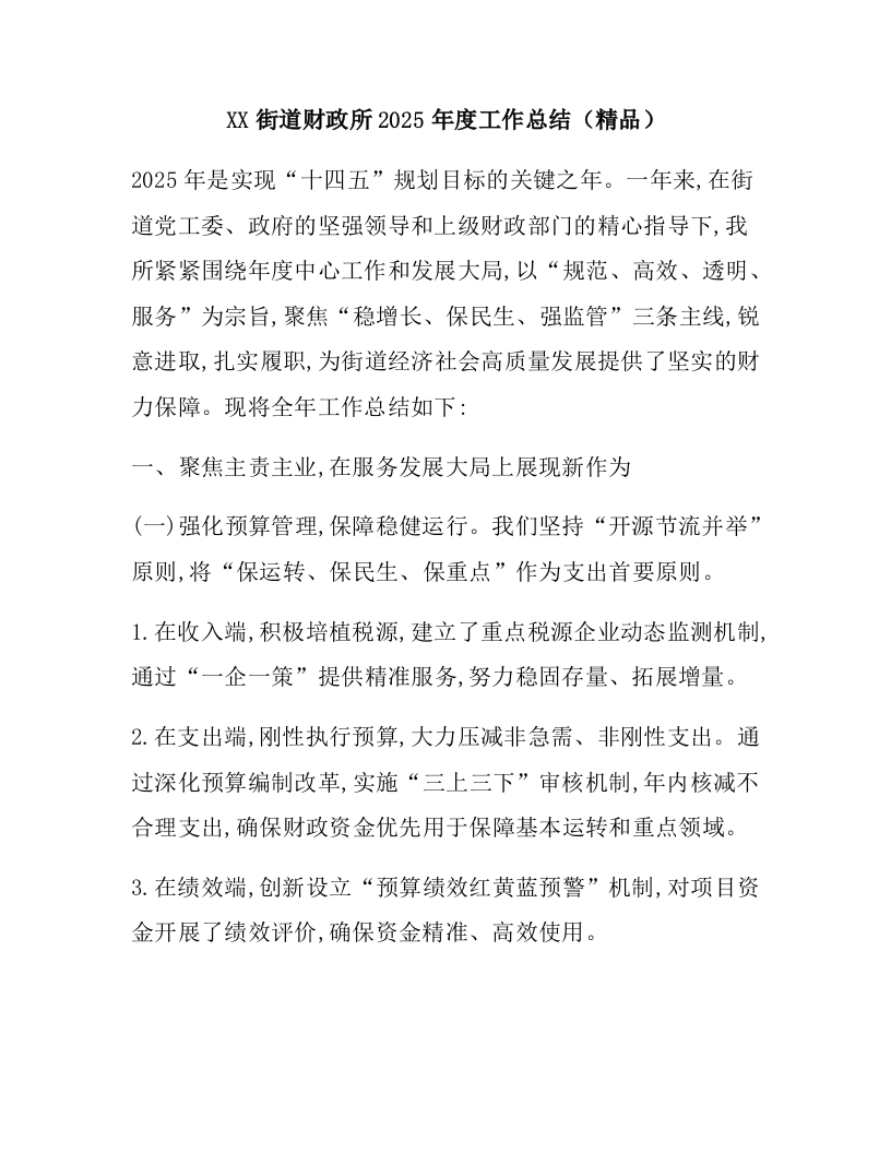 XX街道财政所2025年度工作总结(精品)