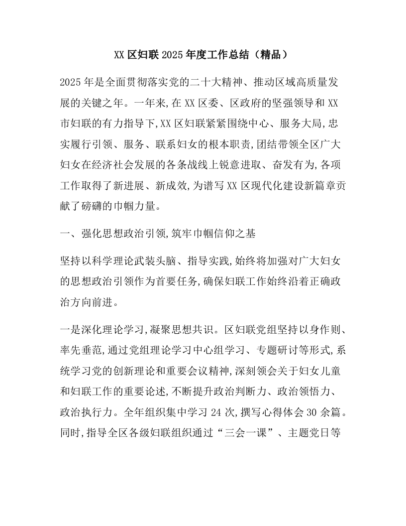XX区妇联2025年度工作总结(精品)