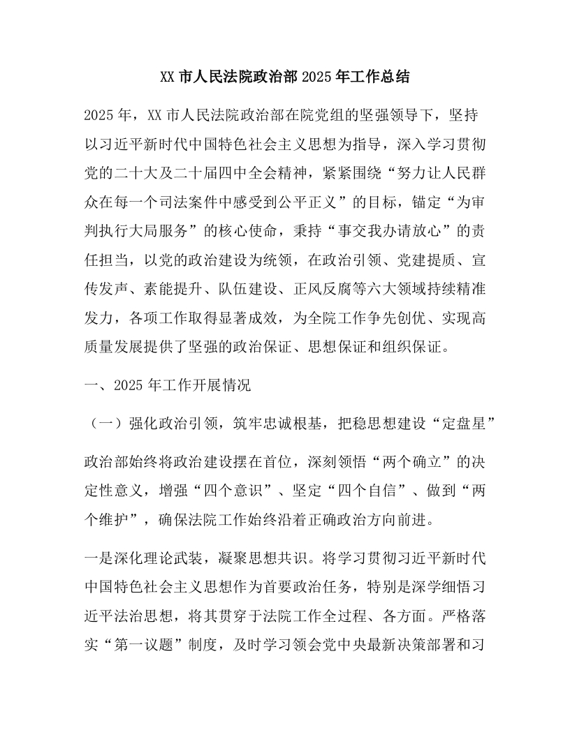 XX市人民法院政治部2025年工作总结