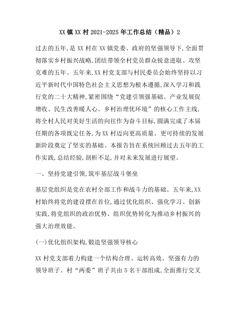 首页热门分类工作总结XX镇XX村2021-2025年工作总结(精品)2