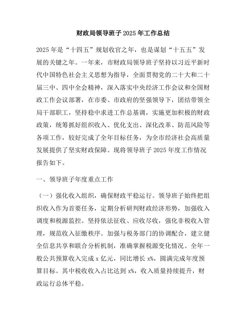 财政局领导班子2025年工作总结