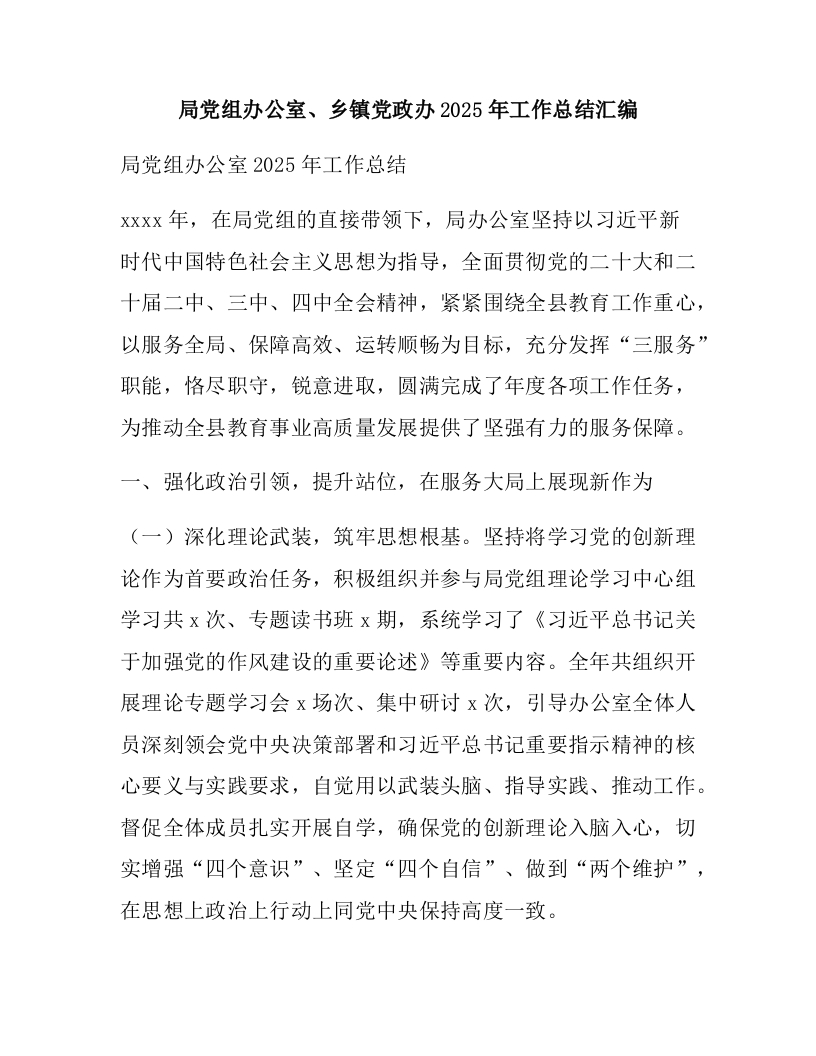 首页热门分类工作总结局党组办公室、乡镇党政办2025年工作总结汇编