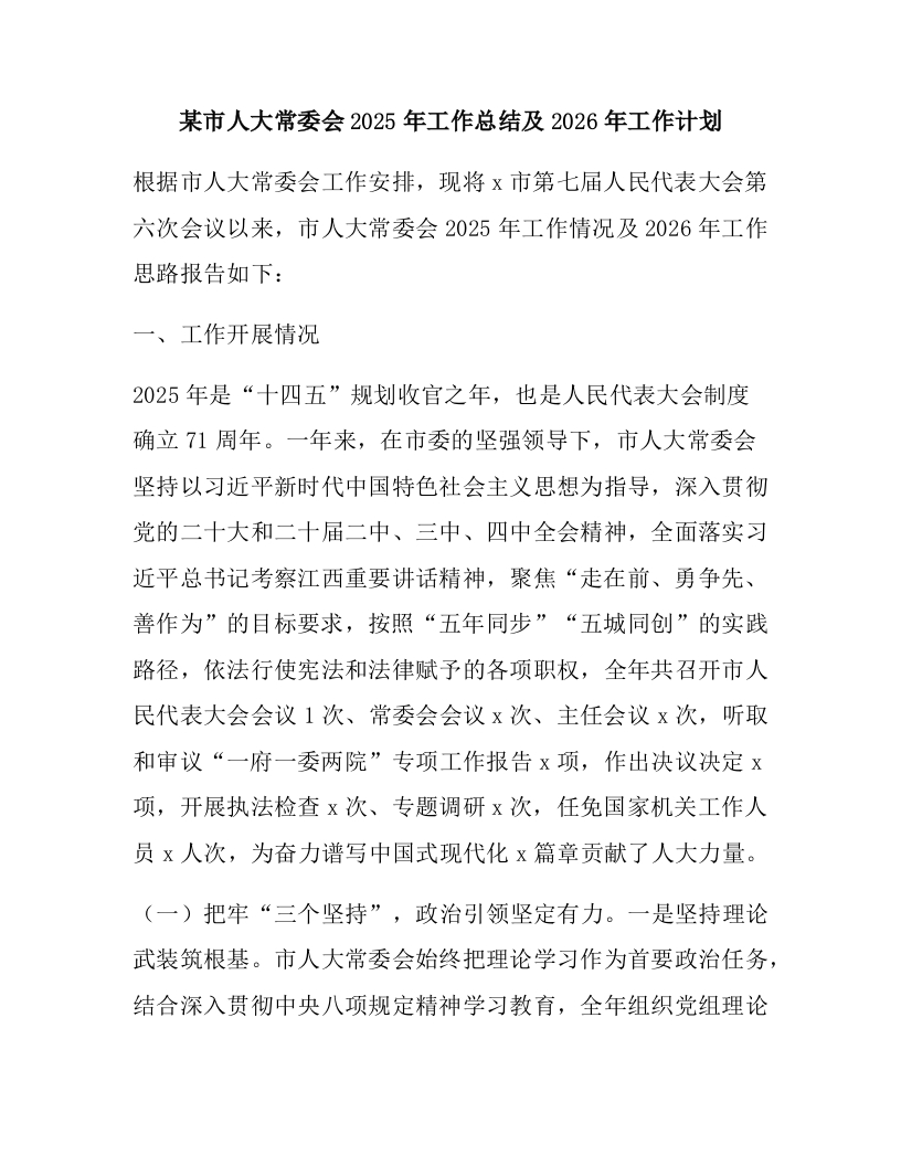 某市人大常委会2025年工作总结及2026年工作计划