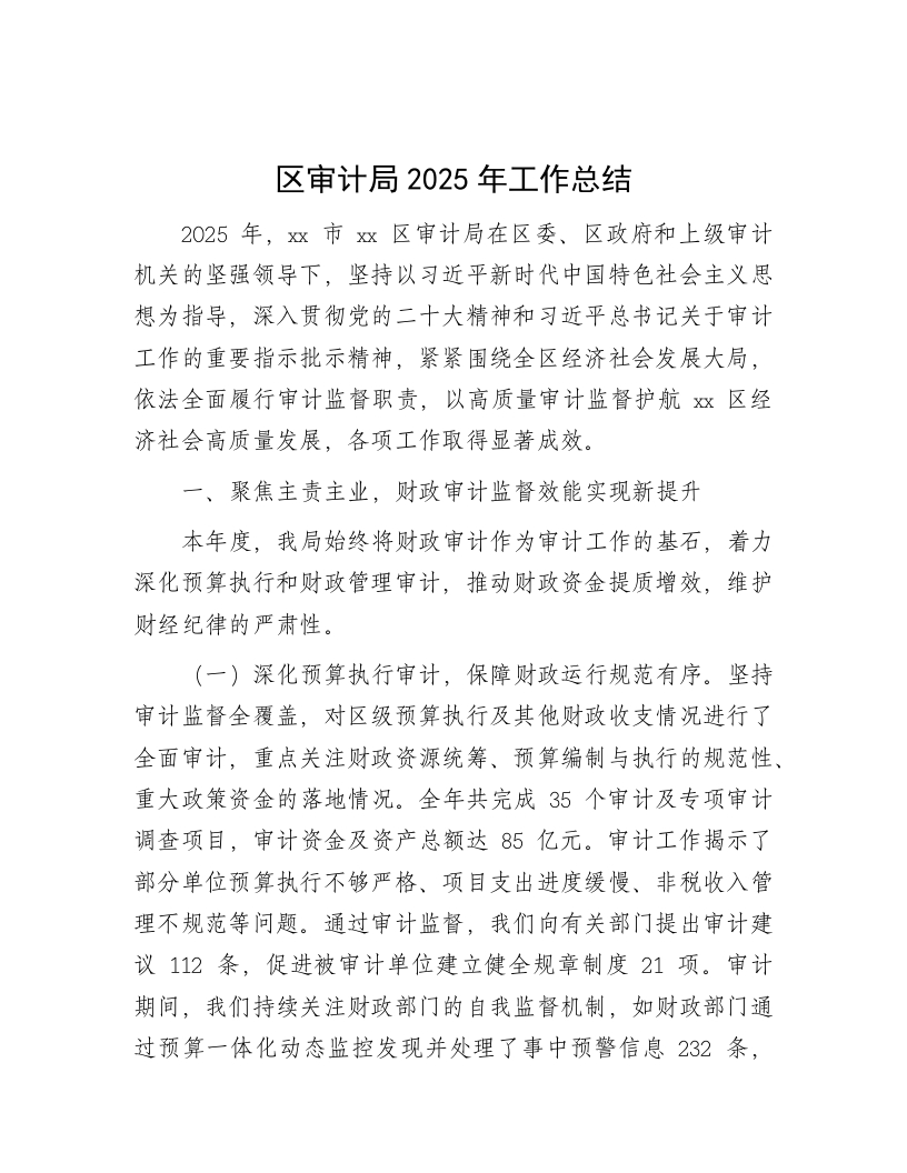 区审计局2025年工作总结