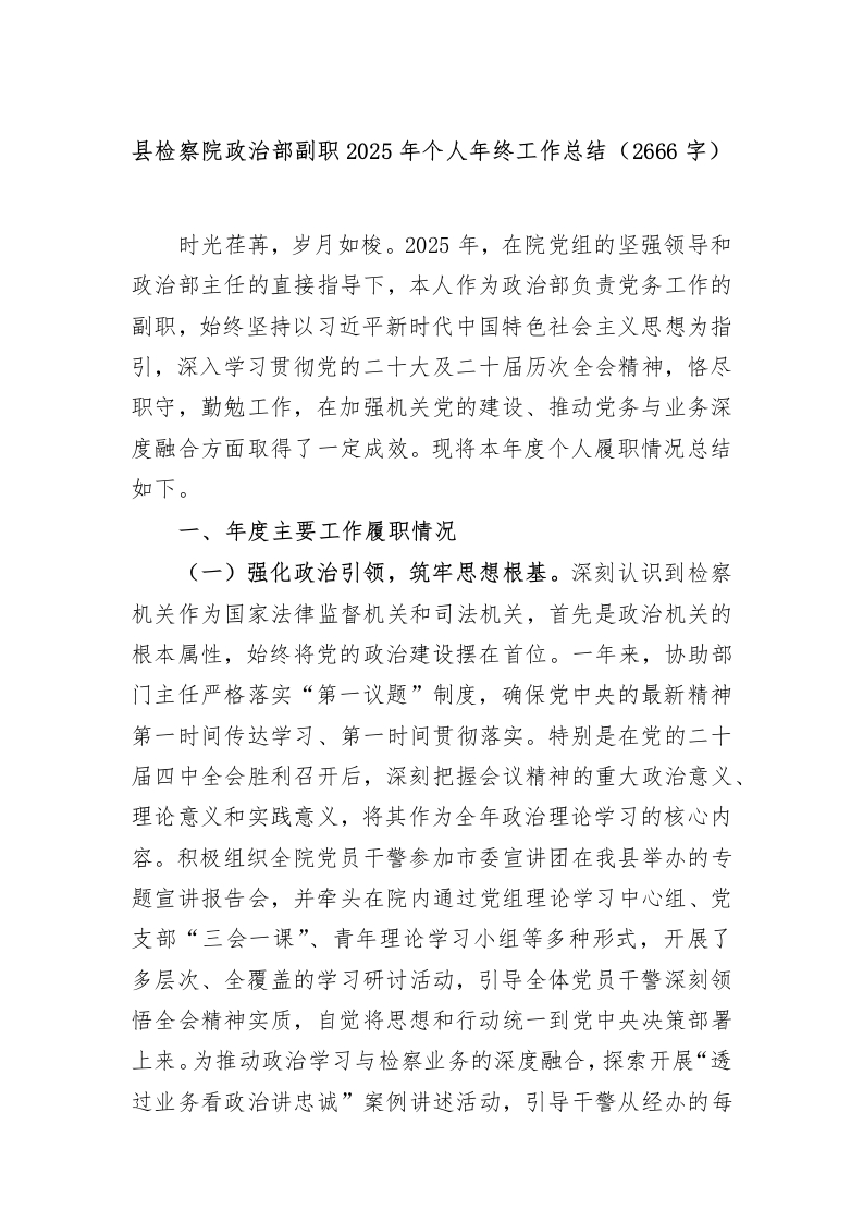 首页热门分类工作总结县检察院政治部副职2025年个人年终工作总结(2666字)