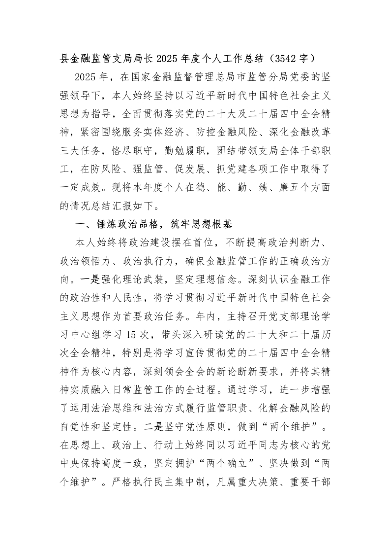 县金融监管支局局长2025年度个人工作总结(3542字)