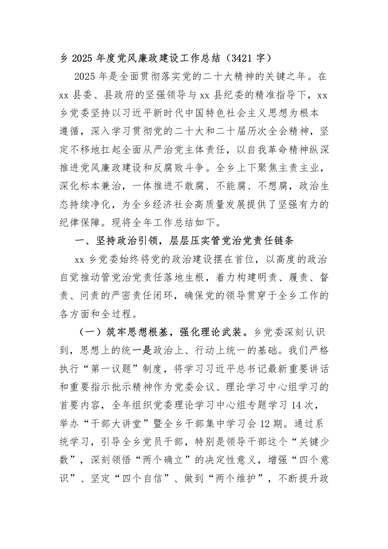 首页热门分类工作总结乡2025年度党风廉政建设工作总结(3421字)
