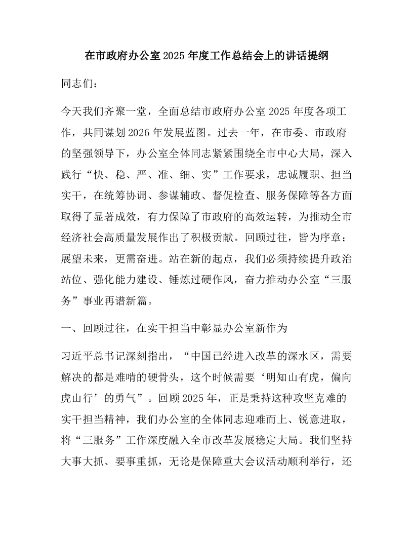 在市政府办公室2025年度工作总结会上的讲话提纲