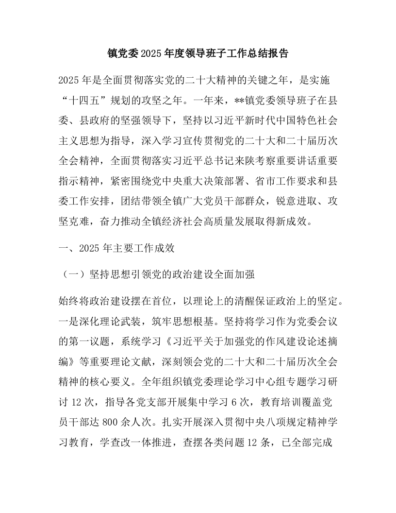首页热门分类工作总结镇党委2025年度领导班子工作总结报告