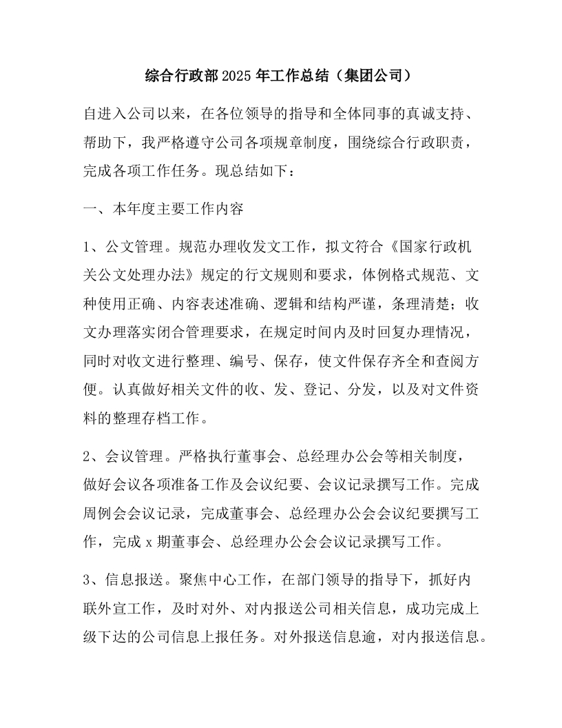 首页热门分类工作总结综合行政部2025年工作总结(集团公司)