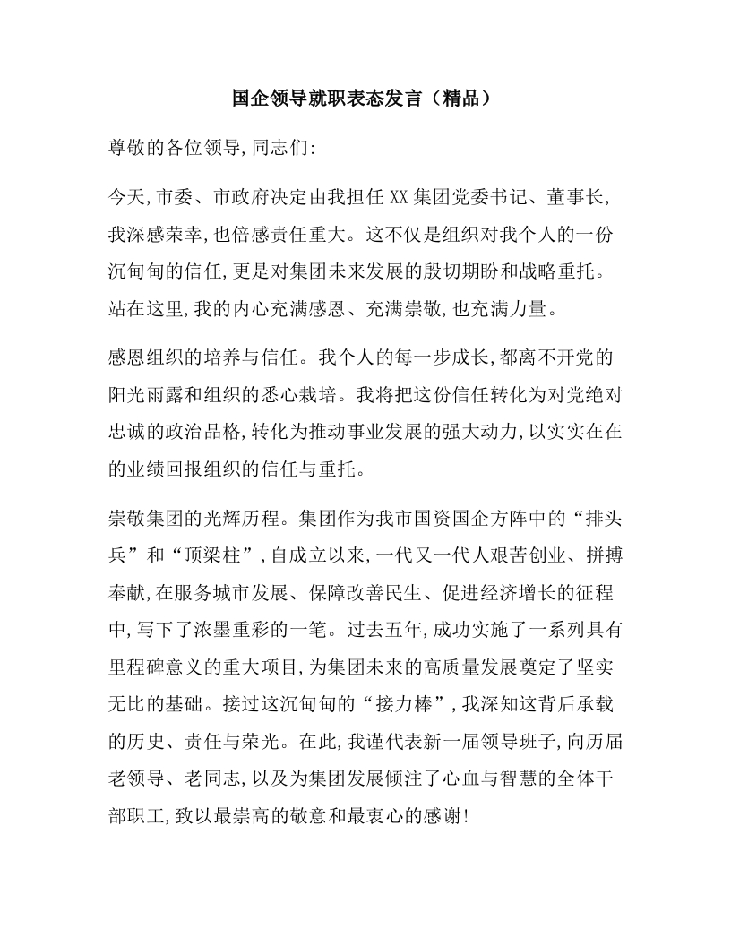 国企领导就职表态发言(精品)