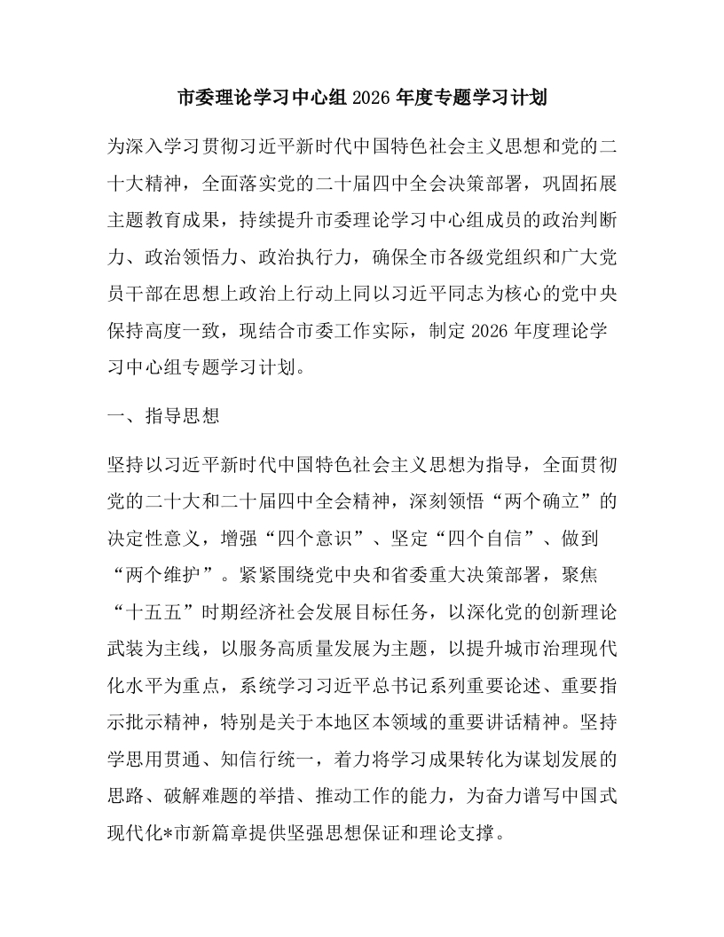首页报告总结计划方案市委理论学习中心组2026年度专题学习计划